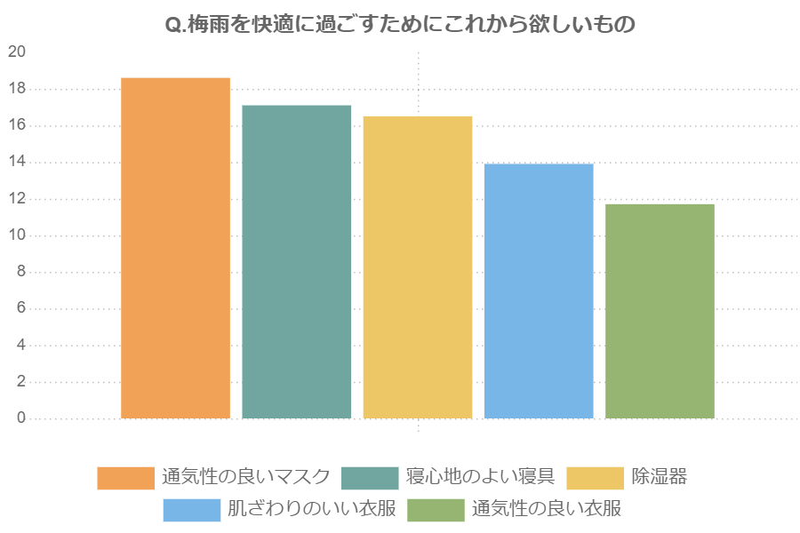 また、「Q.梅雨を快適に過ごすためにこれから欲しいもの」でも、マスクが1位になっています。