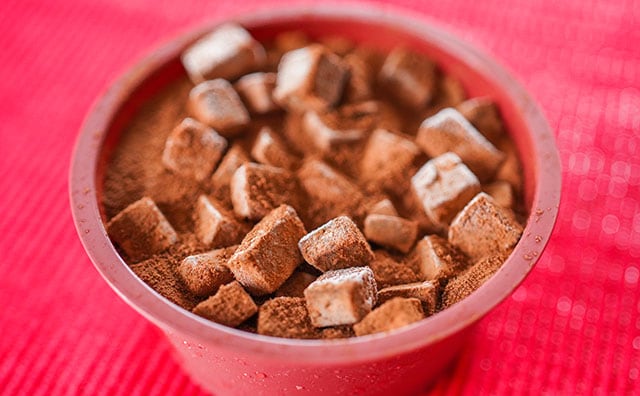 次のアイスはセブンプレミアムの「セブンプレミアム 生チョコアイス」(税込213.84円)です。毎年いまくらいの時期に発売されている人気アイスなのでご存じの方も多いと思いますが、チョコアイスの上にダイスカットした生チョコをトッピングしたもの。くちどけのよい生チョコと、なめらかな舌ざわりのチョコアイスの組み合わせは文句なしのおいしさですよ。