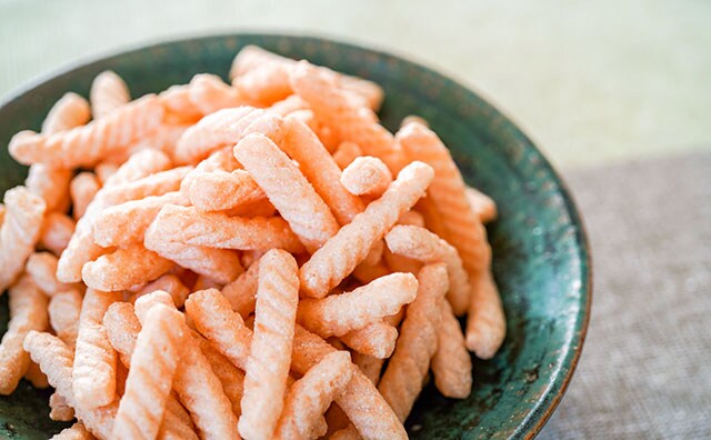 続いてのお菓子は11月8日(月)に発売されたカルビーの「かっぱえびせん まろやか北海道チーズ味」(価格:オープン)。秋冬向けとして発売された同商品は、えびのうまみと相性がよいチーズ味を使ったもの。昨年発売されたカマンベールチーズを使用した「北海道チーズ味」を改良し、新たにマスカルポーネチーズやオニオンパウダーを加えることで、まろやかなチーズ味とコクを楽しめる仕立てになっています。