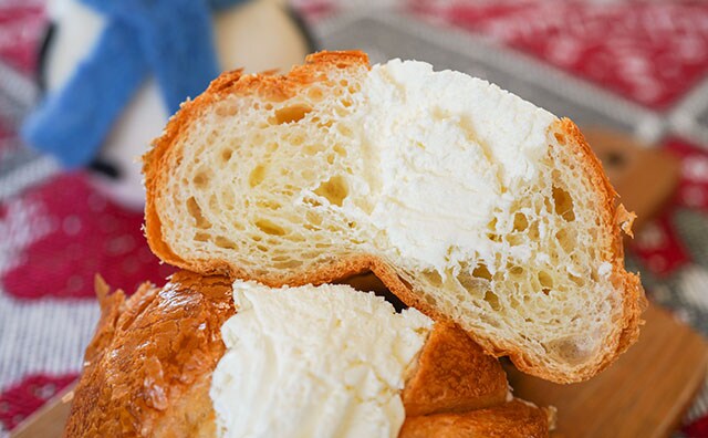 まずはセブン-イレブンが2021年11月23日(火)に発売した「たっぷりホイップデニッシュ」(税込159.84円)。さっくりとした食感のデニッシュ生地にコクのあるホイップクリームを絞った商品です。ふわふわであっさりとした軽めのホイップクリームというよりも、やや硬めで濃厚さを感じるコク深いホイップクリームがおいしさのポイント。食べ始めから終わりまで、ずっとミルキーな味わいを楽しめますよ。