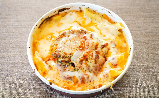 最後は11月30日(火)発売の「6種チーズのハンバーググラタン」(税込498円)。ゴーダ、チェダー、モッツァレラ、エダム、ステッペン、パルメザンチーズとトマトのソース、バターの香り広がるベシャメルソースを合わせたハンバーググラタンです。たっぷりのチーズがとろ~りととろけて、トマトソースの甘みや酸味、ハンバーグのうまみなどと絡み合い、とてもおいしいです。香りのよいブラックペッパーがよいアクセントになっていますね。前述の「お店の美味しさそのまま ラケルパン」と合わせれば、贅沢感のある食事になりそう。