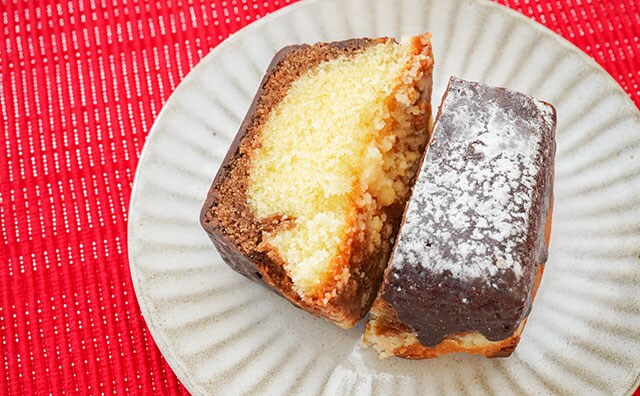 ベーカリーコーナーに並んでいるこの商品は、ほろ苦いコーヒー生地と濃厚なチーズ生地が楽しめるティラミス仕立ての焼き菓子です。