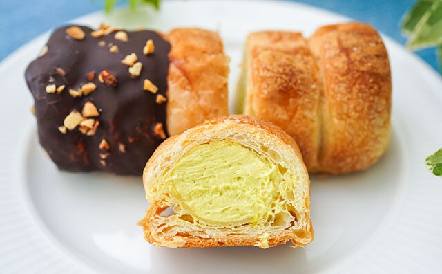 ピスタチオらしい油分を感じるちょっと重めのクリームと、ふんわりとした歯切れのよいデニッシュがマッチしています。チョココーティングやアーモンドのトッピングがよいアクセントになっているから最後まで飽きずに食べられますね。