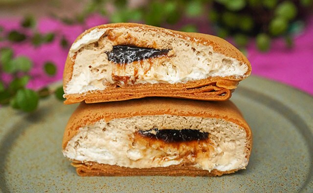 定番人気のクレープの黒糖バージョンとなる同商品は、クレープ生地の中に黒糖の風味が味わえるクリームとソースが入っています。