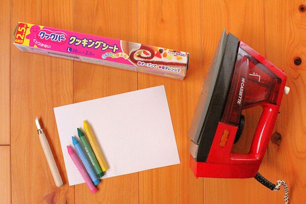 今回挑戦するクレヨンを使ったアートは、クレヨンをアイロンの熱を利用して溶かしながら紙に色を乗せていくものです。いつものように紙にクレヨンで描いていくのとは違った発色とインパクトが楽しめます。小さくなって使えなくなったクレヨンを使うのも◎。