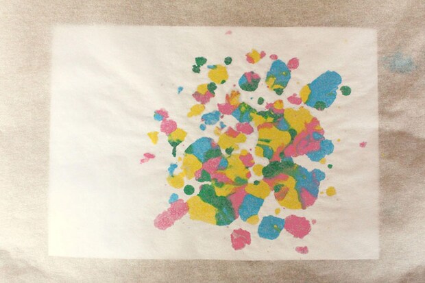 すぐにクッキングシートをはがしてしまうと、写真のようにクレヨンがクッキングシートの方にくっ付いてしまいます。この淡く不思議な雰囲気が好みだという人は、こちらでもOK。