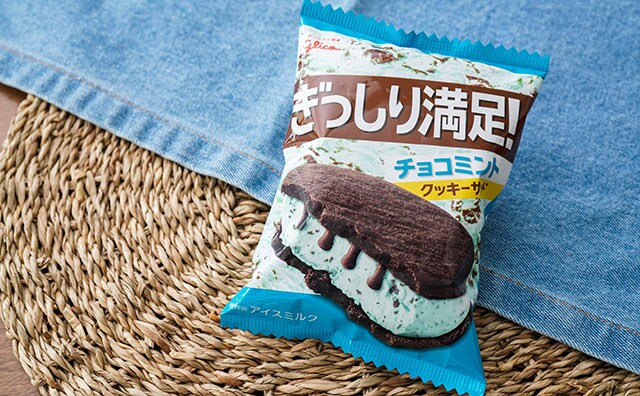 2品目は5月24日(火)にファミリーマート限定・数量限定で発売された「グリコ ぎっしり満足!チョコミントクッキーサンド」(税込178円)。