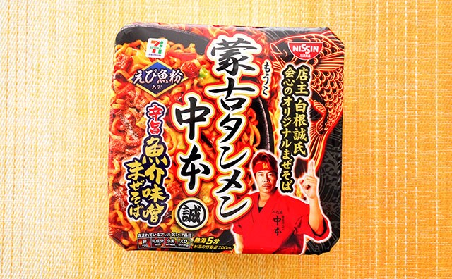 最後はセブンプレミアムが6月6日(月)に発売した「蒙古タンメン中本 辛旨魚介味噌まぜそば」(税込246円)。