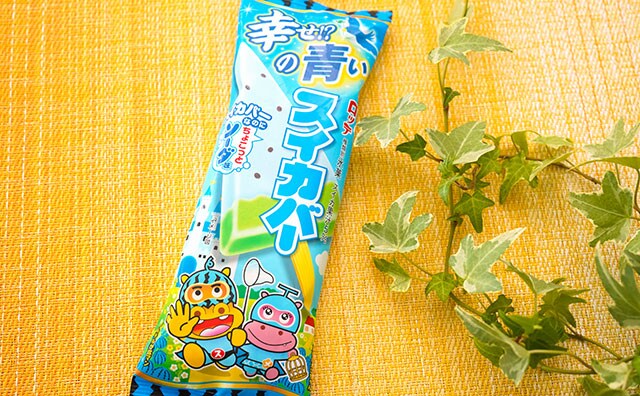 まずは誰しもが知っている国民的アイスのひとつ、ロッテの「スイカバー」の新商品となる「幸せ!?の青いスイカバー」(税込108円)。