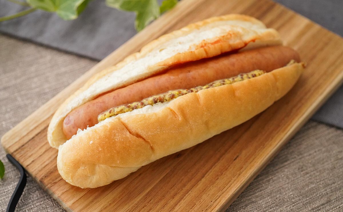 5品目は「シャウエッセン使用ホットドッグ」。みんな大好き(?)な日本ハムの人気ソーセージ「シャウエッセン」をトッピングしたホットドッグです。ケチャップとマスタードのシンプルな味付けにすることで、「シャウエッセン」のジューシーな味わいを堪能できます。