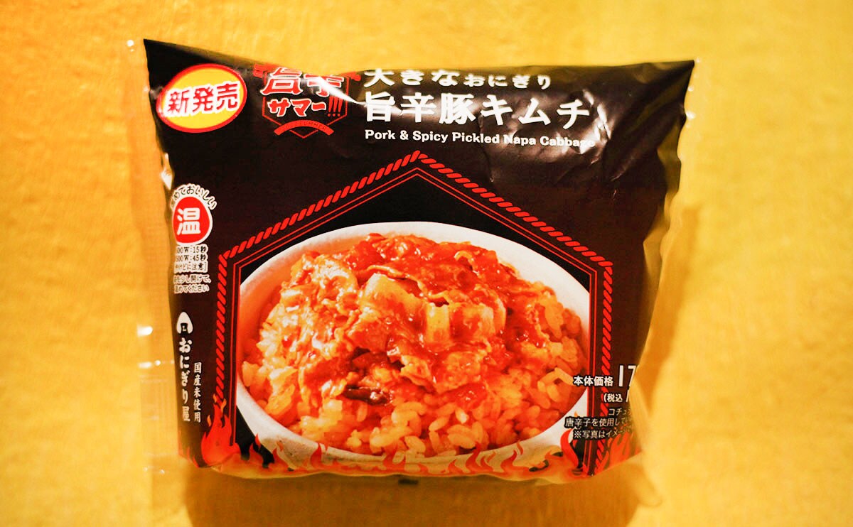 もう一方の「大きなおにぎり 旨辛豚キムチ」は、辛さレベル2。人気の旨辛メニュー「豚キムチ」に玉ねぎを加えることで、食感をプラス。隠し味としてごま油を加え、ごはんも旨辛に味付けしたのだとか。食べごたえのある大きなサイズも特長です。