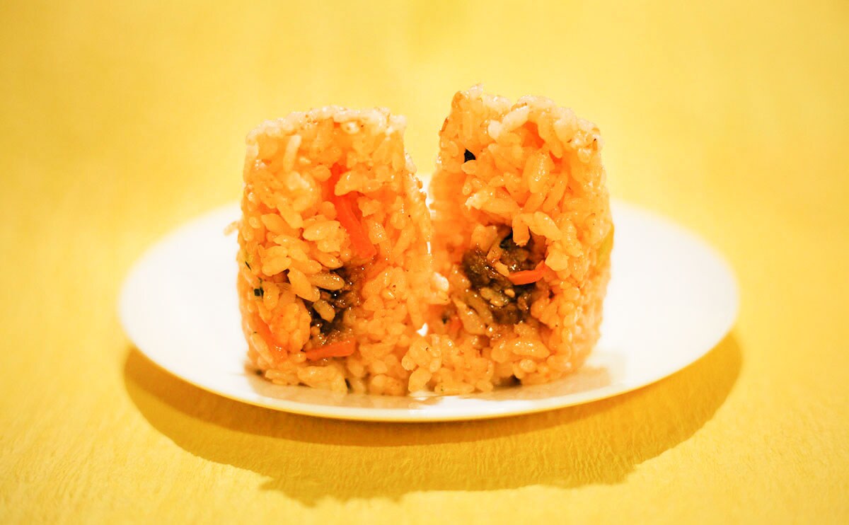 海苔が巻かれていないので、ボロボロと落ちてくるのが欠点ですが、コチュジャンの旨みと辛さが食欲をそそります。「辛さ」といっても、旨みの方が強く心地よいピリ辛なので、お子さんでも食べやすいと思いますよ。