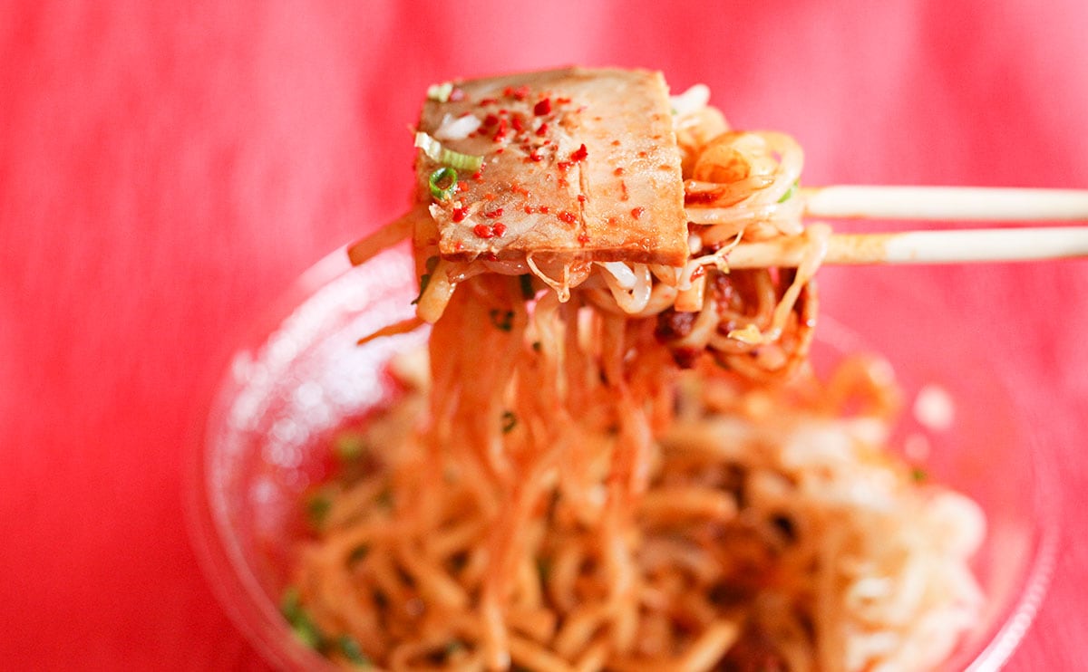 続いては、2022年8月16日(火)発売の「麺処井の庄監修 冷し辛辛魚まぜそば」です。辛さレベルは5で、「旨辛フェア」の中ではトップ級! 冷たいから辛さを感じにくいかな……なんて思ったのですが、一口目から強烈な辛さが襲ってきます。辛いし、痛いはずなのに、ついつい食べちゃう中毒性の高さ。みなさんにもぜひ味わってみてほしい!