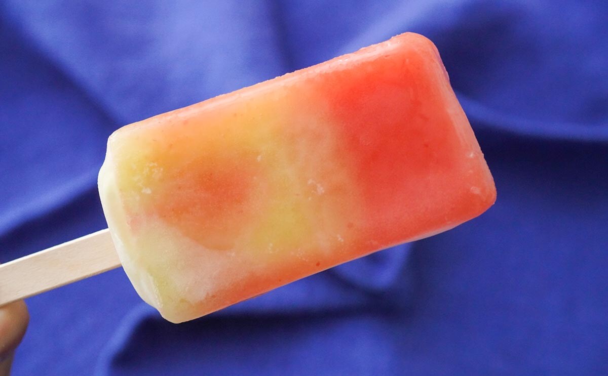 2色の色合いのアイスバーは、少しやわらかくてねっとりとしたくちあたりに。清涼感のある甘みと爽やかな酸味が口の中に広がり、さらに梅の香りが鼻に抜けて、さっぱりとしたおいしさを楽しめます。個人的には「まるで」シリーズの中でも、とくに上位にランクインするおいしさですね。