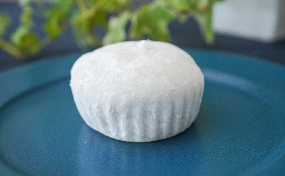 さきほどは黒いスイーツでしたが、今度は真っ白! とってもやわらかくてもちもちとした食感のお餅と、ふわふわでくちどけのよいクリームが絶妙です。小豆のやさしい風味やミルキーな味わい、上品な甘みがたまらない一品ですね。