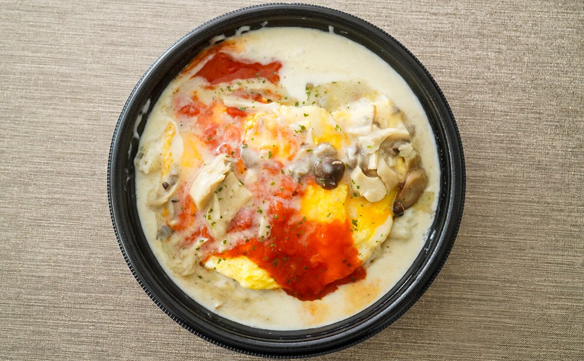2品目は「アルポルト監修 きのこクリームのオムライス」(税込648円)。