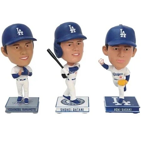 2019年以来、6年ぶりに日本で開催されたMLB公式戦「開幕戦 2025 東京シリーズ」。「LOS ANGELES DODGERS(MLB) – MLB公式 ドジャース 日本人スター選手 大谷翔平 山本由伸 佐々木朗希 / 限定ビッグヘッド・ミニボブルヘッド 3体セット」は、大谷翔平選手・山本由伸選手・佐々木朗希選手がそろって出場した歴史的な舞台を記念した商品だ。