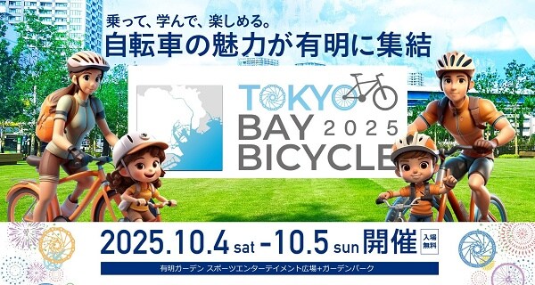 グローブ・スポーツコミュニケーションズは、自転車協会の支援のもと、10月4日(土)・5日(日)の2日間、東京・有明ガーデンにて、自転車の楽しさと安全を体験できる都市型サイクルイベント「東京ベイバイシクル2025」を開催する。