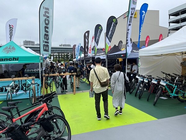「試乗体験」では、最新モデルのスポーツバイクや電動アシスト自転車を、会場に設けられた安全な専用コースで試乗できる。歩行者を気にせず走行できるため、初心者から愛好者まで安心して乗り比べを楽しめる。