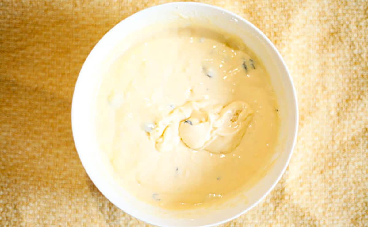(2)(1)にホットケーキミックスと黒豆を加え、ホイッパーで混ぜる。この時、黒豆は適量残しておく