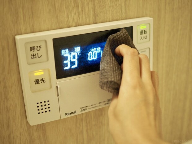 キズを付けたくなく浴室のリモコンも、やわらかなスクラブクロスを使えば安心して掃除ができます。力を入れなくても汚れが落ちるので、細かいボタンまわりもサッとひと拭き。