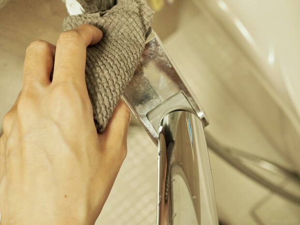 水拭きで十分きれいになり、上部にたまりがちな白っぽいせっけんカスもスッキリ。洗剤を使わなくてもここまできれいになるのは嬉しいポイントです。