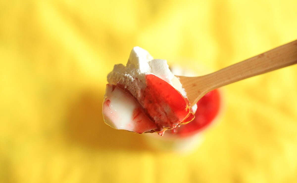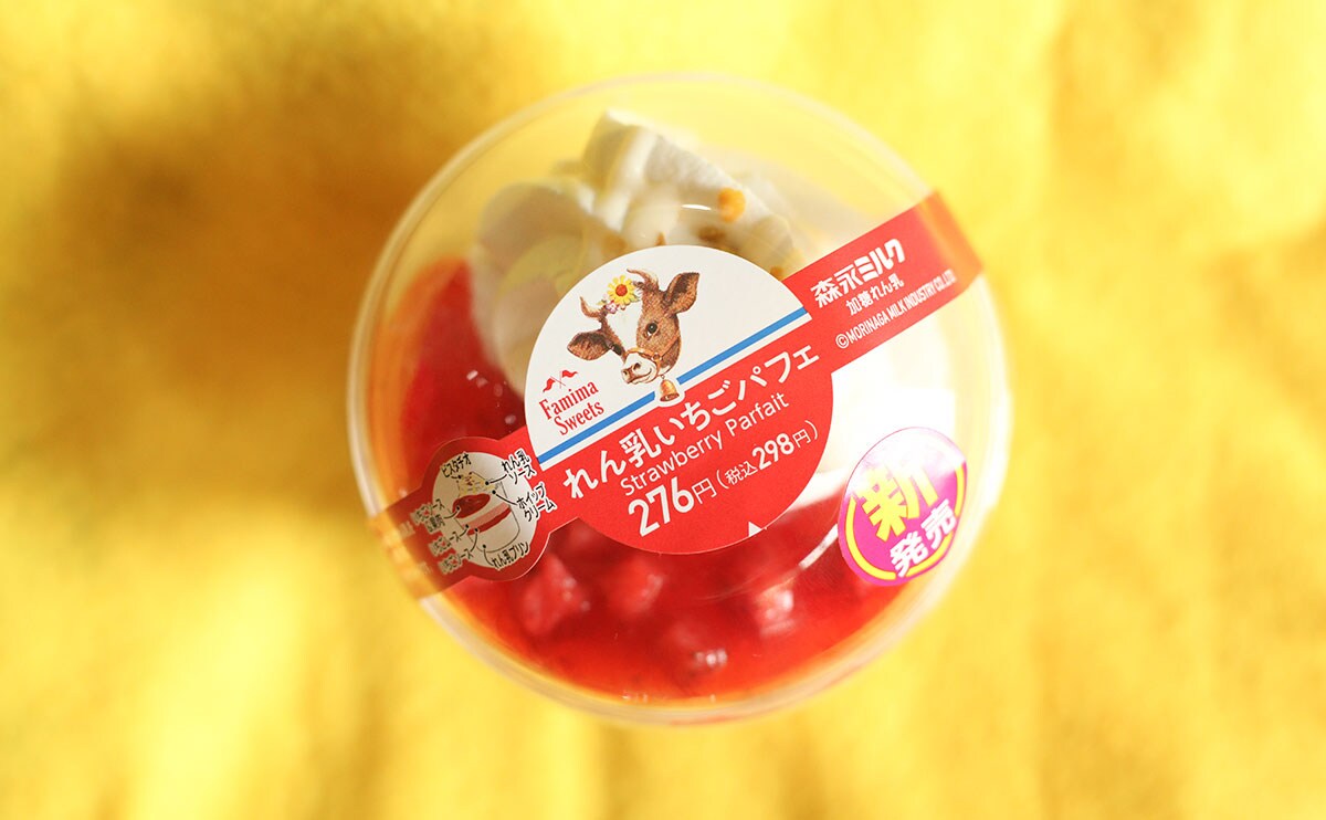 3つ目は、2023年6月27日(火)に発売された「れん乳いちごパフェ」。みなさんご存じの「森永ミルク加糖れん乳」とのコラボ商品です。いちご×練乳の相性のよさは言わずもがな。なかには追い練乳しちゃう人もいるようですよ。