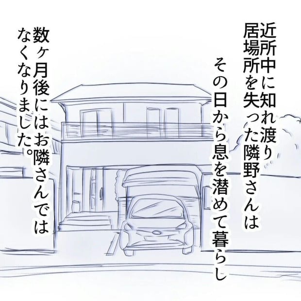 町内会という狭いコミュニティーのなかで、悪事がバレてしまった隣野さん。数か月後に引越してしまったそうです。主人公は隣野さんに勝ちましたが、うれしいという感情よりもむなしい気持ちの方が大きいようです。