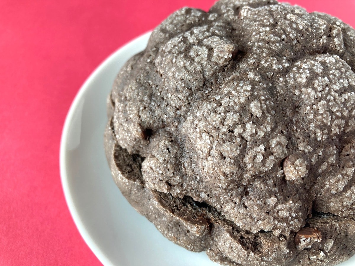 チョコマカロン生地、なめらかなチョコクリーム、アクセントのチョコダイスの3つがポイントがある菓子パンです。取り出してみると、濃厚なチョコの香りが辺り一面に漂ってきました。外側を覆うチョコマカロン生地はサクサク&シャリシャリ感のある口当たり。クロワッサンの軽くてしっとりとした生地とも好相性◎SNSでも「ほんっっっっとうにおいしい」「リピしたい」「口当たりシャリシャリ」「ダイスチョコのポリポリ食感が美味しい」など、さまざまな感想が出ていました。