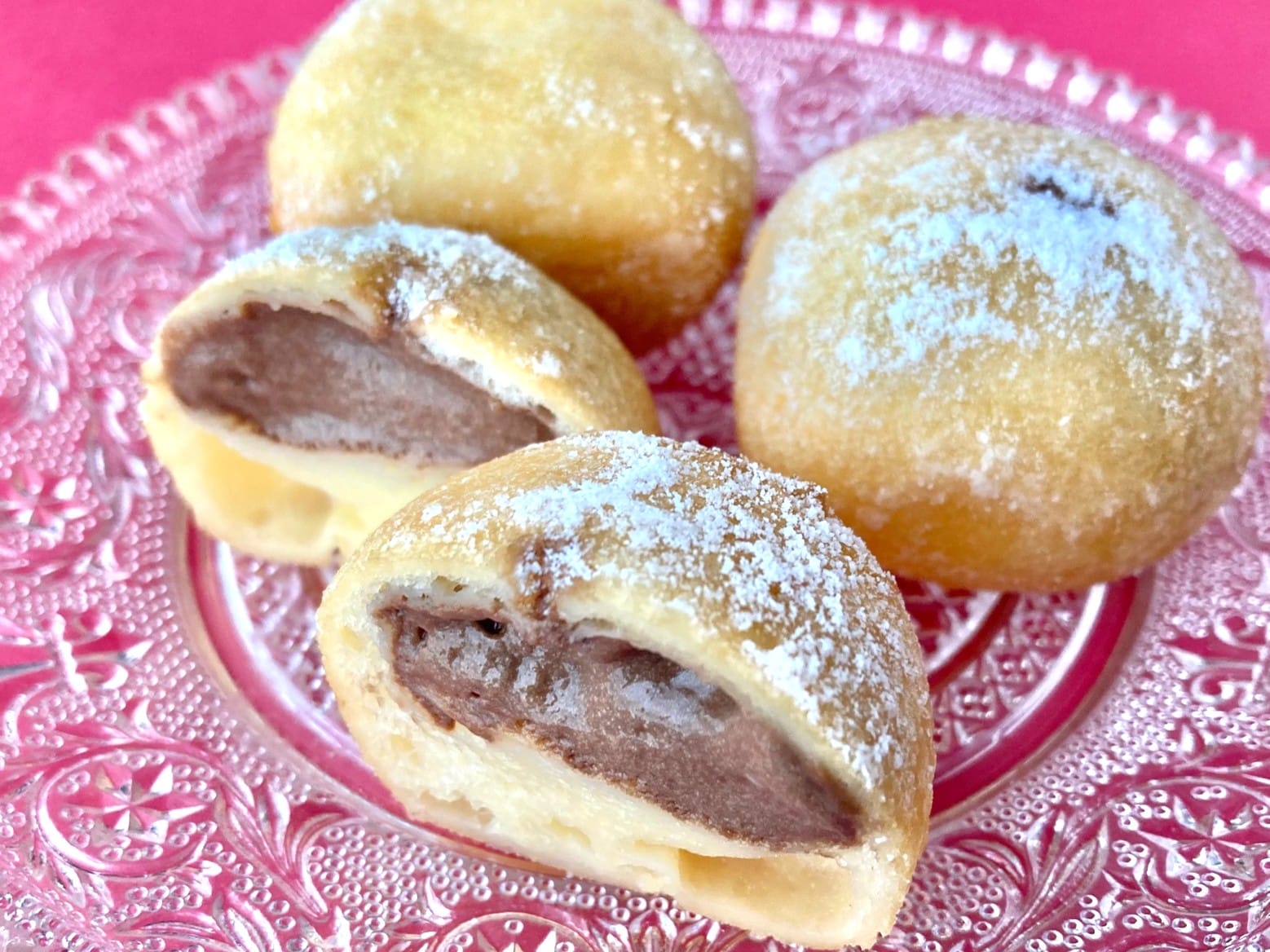 開封した瞬間から揚げパンの香りがしてテンションUP!ココアシュガーのトッピングが目にも美しく、生地はふわふわで甘さ控えめなのに満足感があります。中にはクリームがたっぷり入っていて、マカダミアナッツの香りは控えめですが、チョコクリームと生地の相性は抜群!SNSの口コミでも「チョコクリームたっぷり」と話題になっているのも納得。ほかにも「甘さがちょうどいい」「最高に美味しかった」など全体的な評価が高めでした。