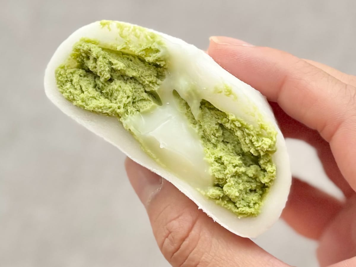 ふわもち食感の大福生地に抹茶ホイップと練乳が包まれており、抹茶のほろ苦さと練乳の濃厚な甘みが程よく調和しています。生地はふわっともちもちで口当たりが良く、最初の一口から最後まで満足感が続く仕上がり。過去作も好評だったシリーズの最新作なのもあって、注目度は高い様子。抹茶好きや大福が好きな方におすすめのスイーツです。