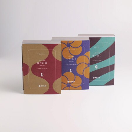 文庫型のパッケージを採用した新商品「文庫型ラフカディオ珈琲」は、八雲の物語×怪談×コーヒーをテーマに「母の幻影」「つながり」「耳で書く」の全3種類が用意されている。