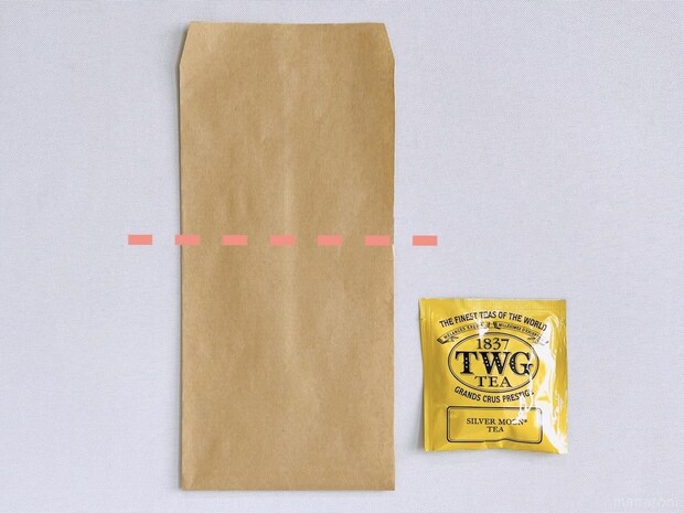 封筒を一旦畳み、入れるものの高さに合わせてハサミで切ります。