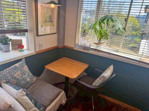 店内は清潔感があり、大きな窓から光が差し込む明るい空間。カウンター席にはWi-FiやUSB充電対応コンセントも完備されていて、ちょっとした作業や休憩にもぴったり。