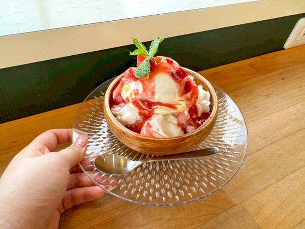 ふんわり繊細な氷に、やさしい甘さのミルクがたっぷり染み込んだ癒しの一杯。見た目も可愛く、夏にぴったりのひんやりスイーツです。