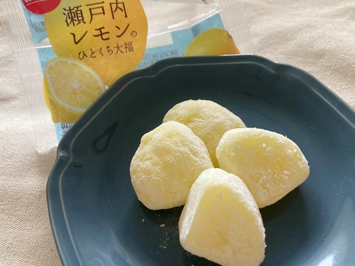 この商品は、瀬戸内レモンの果汁とピールが入ったジュレをおもちで包んだひとくちサイズの大福です。