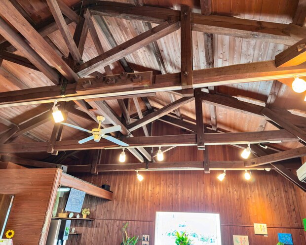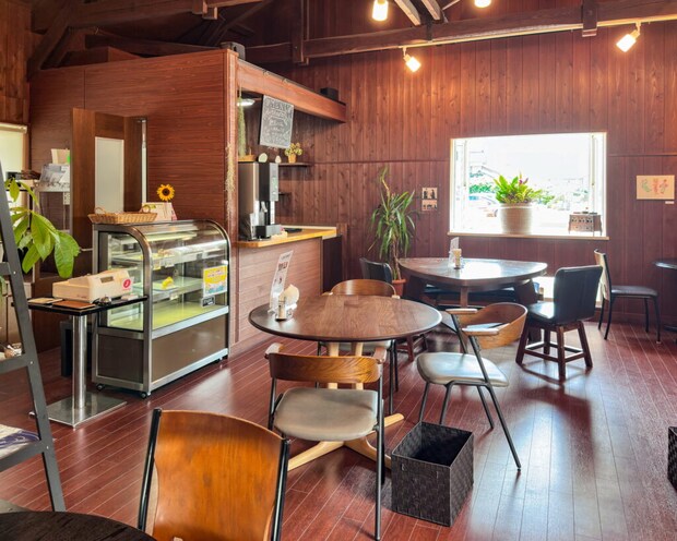 窓からは自然光が差し込み、木と自然のぬくもりが調和した空間です。