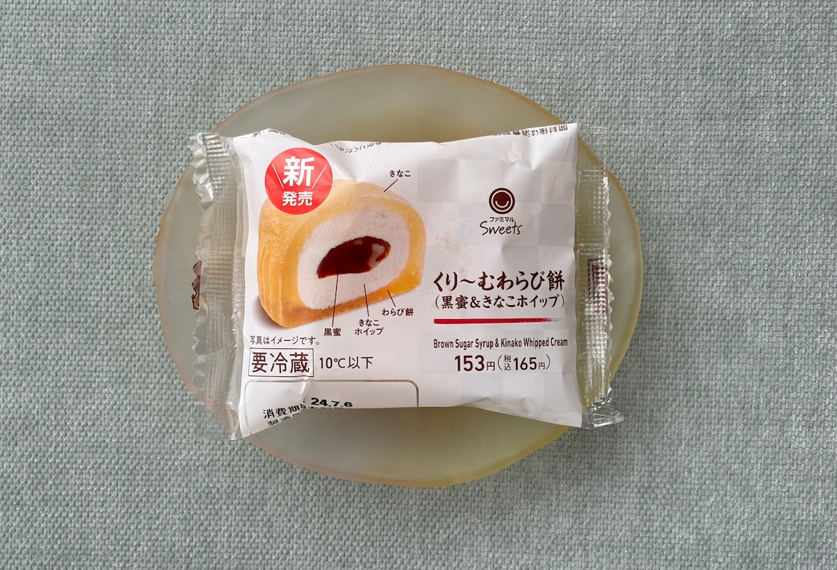 ファミリーマートは2024年7月2日(火)、中にきなこホイップと黒蜜をたっぷり包み込んだ「くりーむわらび餅(黒蜜&きなこホイップ)」(税込165円)を発売しました。