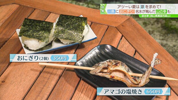 「涼水亭」に流れる川を源流とする湯原という地域で養殖されているアマゴの塩焼き。