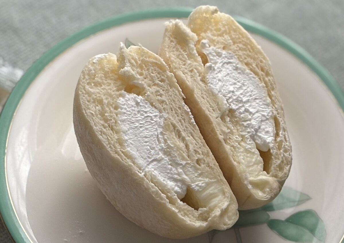 口にすると、まず感じるのが、レアチーズクリームのコクのある濃厚チーズ味。さらに、軽やかで適度な甘みのあるレアチーズホイップ、優しい食感のパンがすべてミックスされていい感じです。