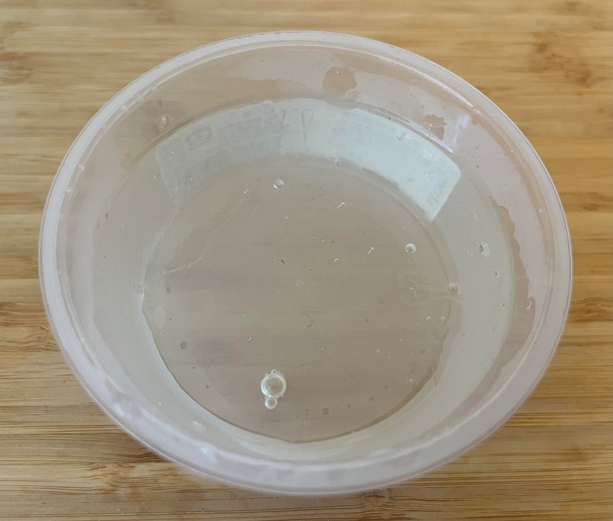 実際に「透明プリン?」を食べてみると、カラメルの味を感じます。食感はプリンというよりもゼリーに似た感じ。甘さもしっかりありますが、サラサラっと食べることができました!