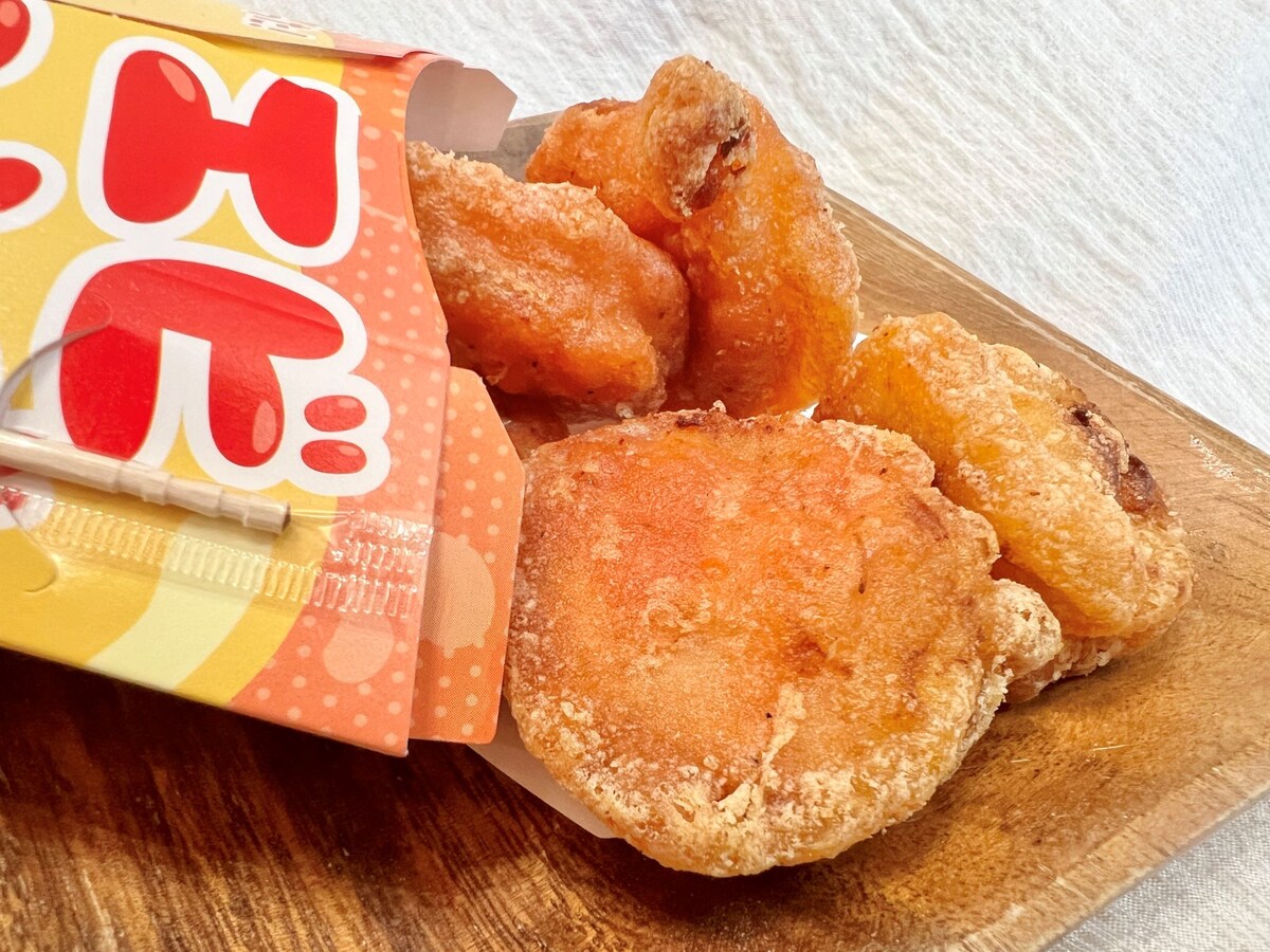 惜しげなくパクっと1個、口の中に……想像通りのエビの風味と、サクッとした食感が広がります。もぐもぐ何度か噛むうちに、少しづつマヨが頭角を現し、口の中でエビマヨが仕上がりました!