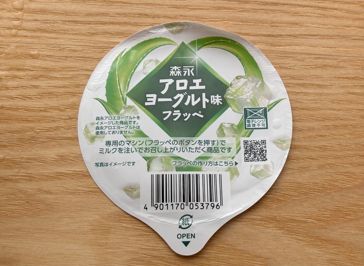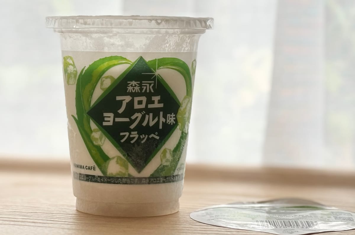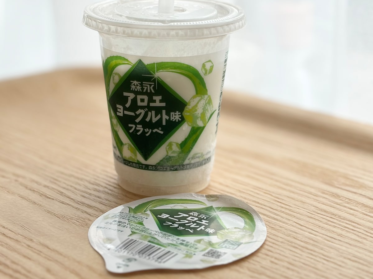 ヨーグルトの定番商品でもある「森永アロエヨーグルト」の味を再現したフラッペで、中にはアロエの葉肉も含まれています。