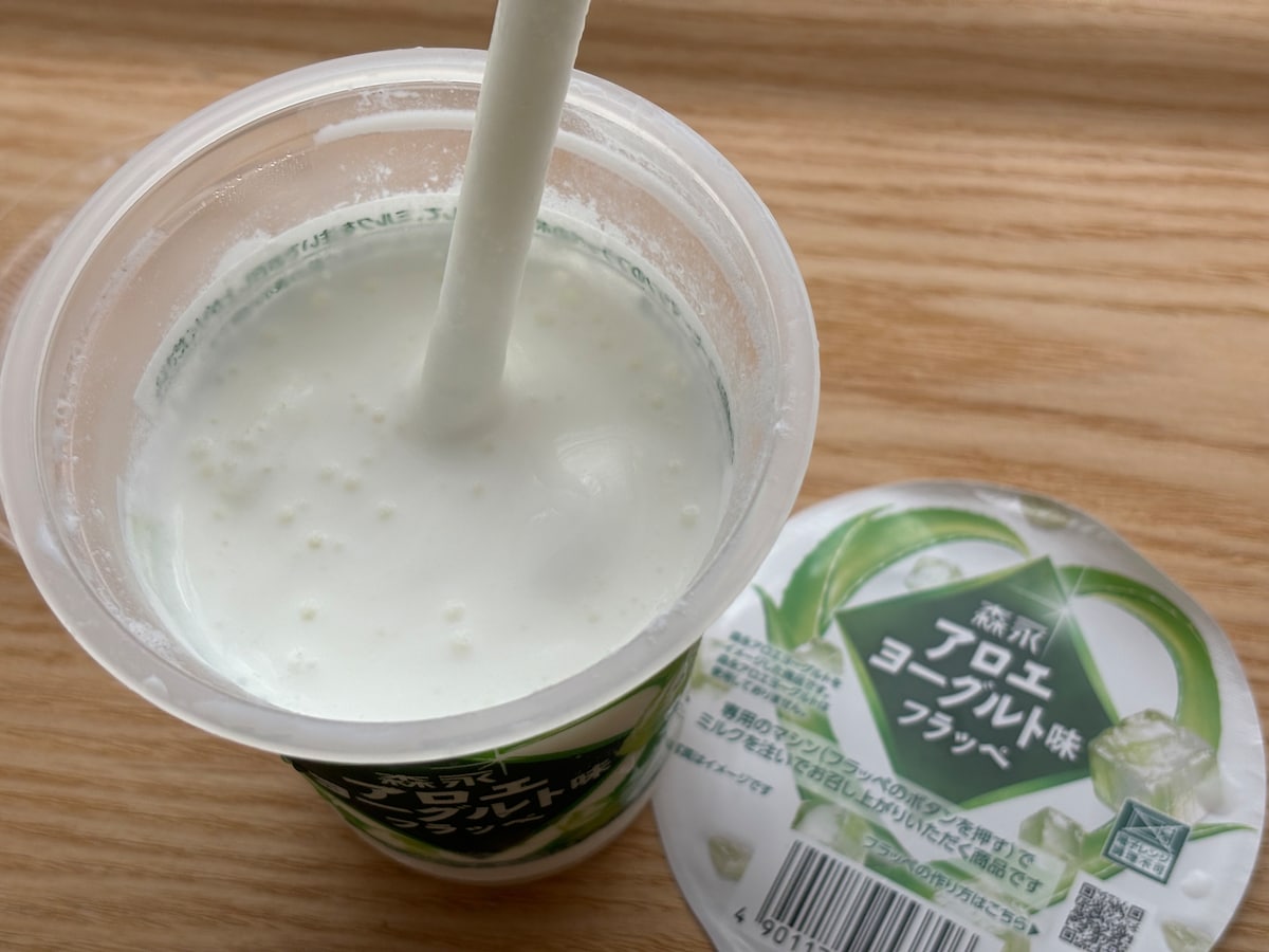 混ぜた後のフラッペはとってもクリーミー。アロエヨーグルトと同じ爽やかな香りが漂ってきます!