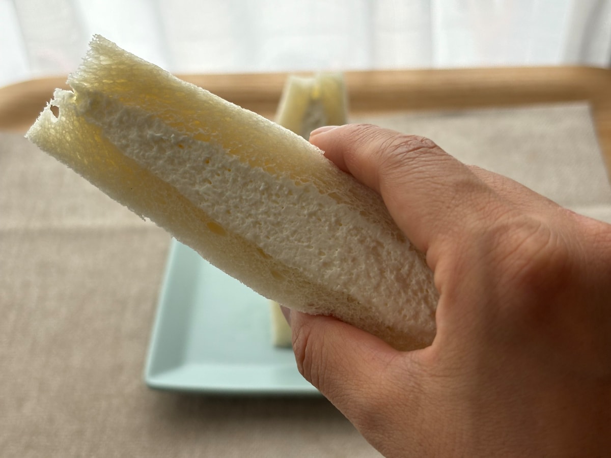 塩バニラ風味の真っ白なホイップクリームだけをパンで包んだサンドイッチです。