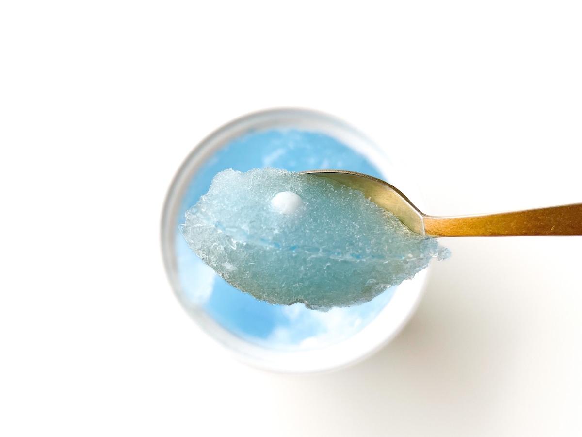 何か所かスプーンを入れて、バニラアイスも見つけました。バニラアイスはとっても甘く、ソーダ味のかき氷と相性抜群。アイスの構造として、あえて層にせずランダムに入れているところもポイントとなっています。