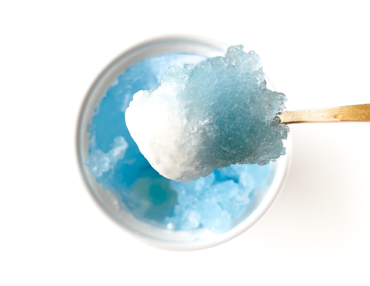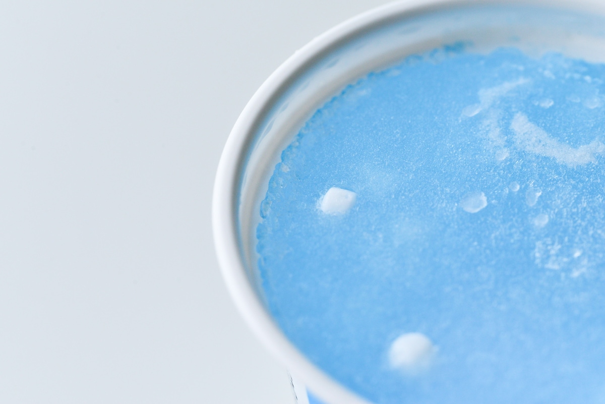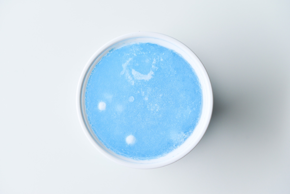 フタを開けると、鮮やかなブルーの氷菓が顔を出しました。