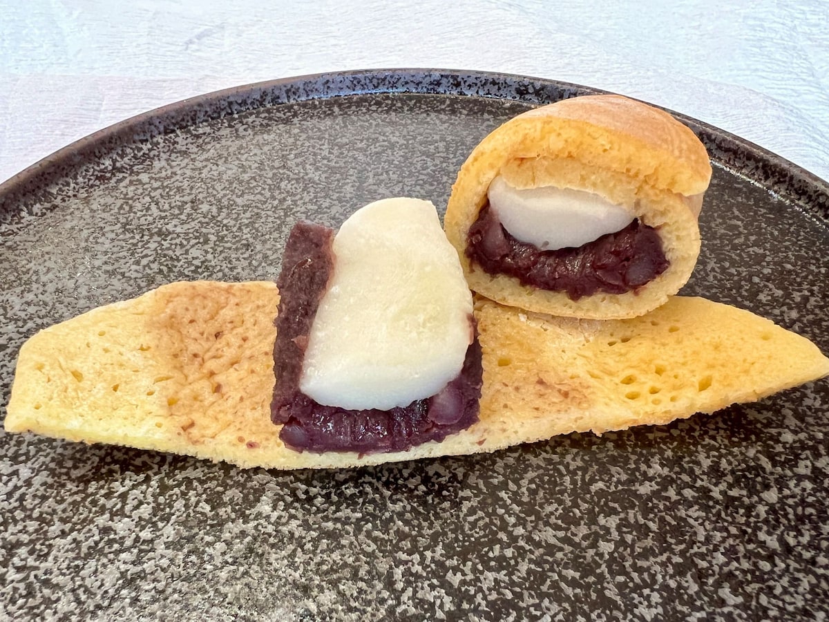真ん中にも隙間なくお餅とあんこがぎっしりです!ここまで来ると、すべてを確認したいという気持ちになってしまい……大変失礼いたします。ペロっと、拝見いたします…。