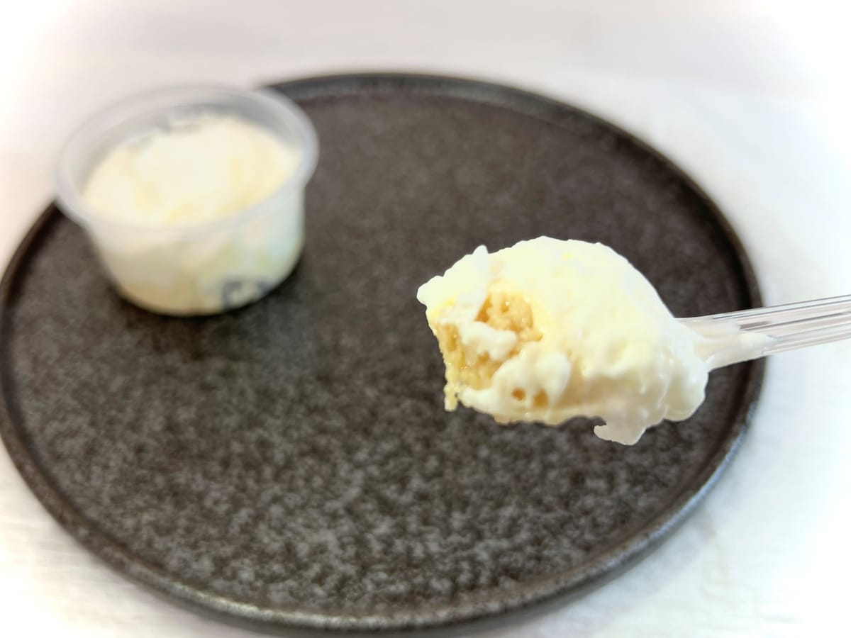 間違いなく「3層一緒に」が正解の食べ方です!バニラが香る濃厚なチーズの味わい、そしてザクザクのクッキークランチがアクセントになって最高です。濃厚チーズですが「レモンとヨーグルト仕立て」になっていることで、後味はすっきり。