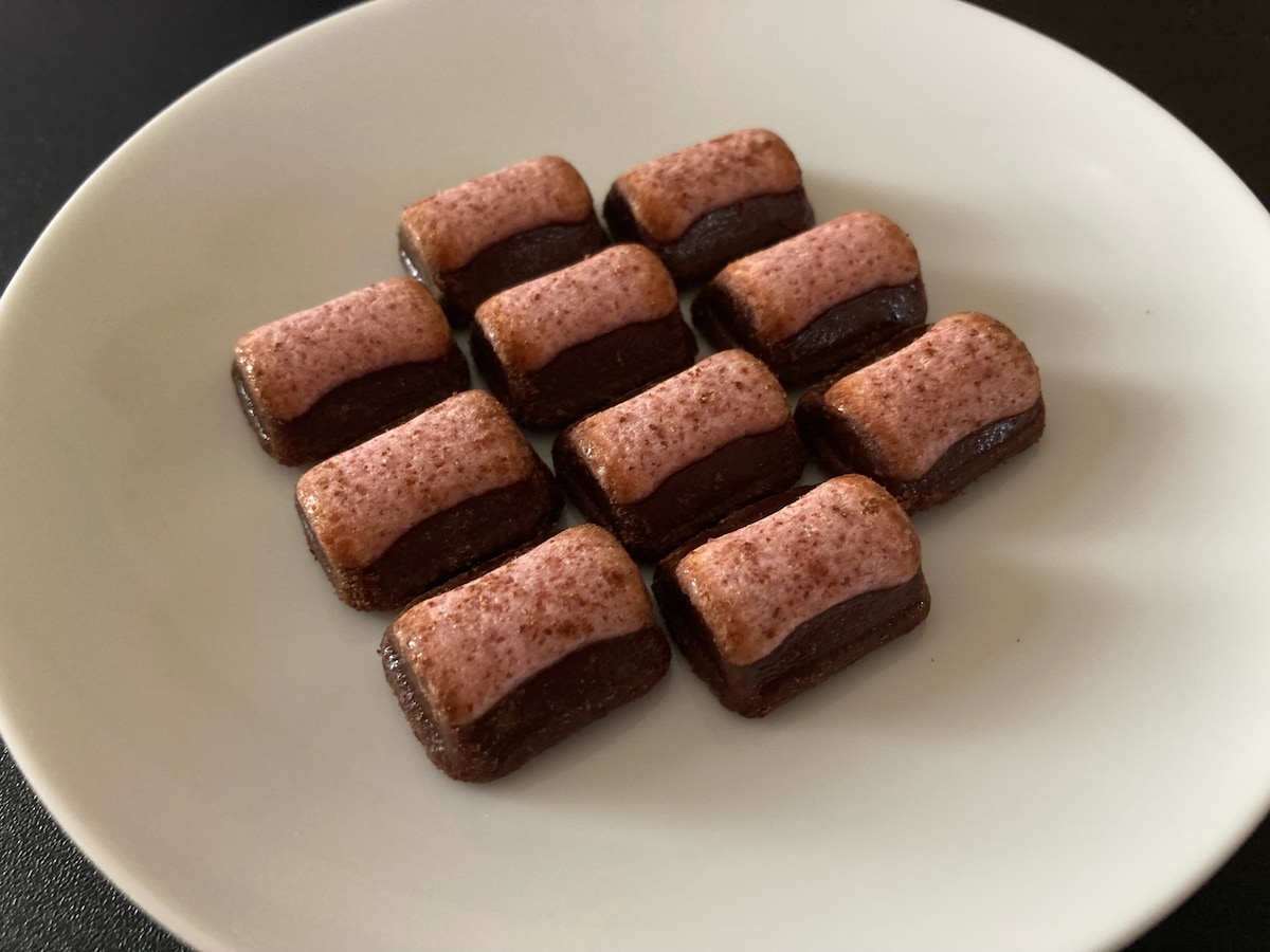 ストロベリー&ブルーベリーフレーバーの焼きチョコ。見た目もサイズもかわいい!